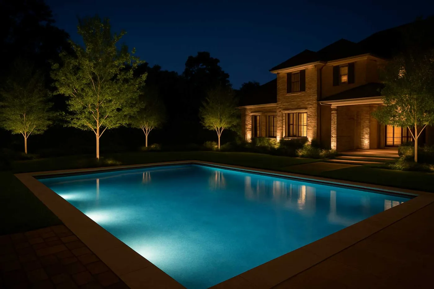 Add a touch of elegance to your pool or spa area with our custom lighting designs, ensuring safety and beauty go hand in hand.